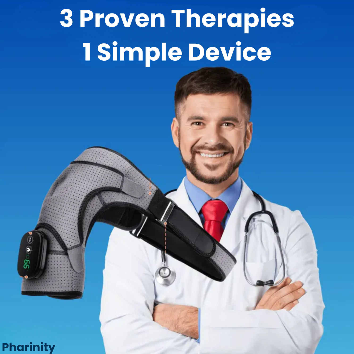 Most shoulder braces only immobilize the joint or provide mild compression — which can actually make stiffness and pain worse. The ThermaPulse™ 3-in-1 Shoulder Therapy Brace goes further, combining targeted heat therapy, soothing massage pulses, and adjustable support to relieve pain at the source. Its gentle warmth boosts circulation, while the rhythmic massage relaxes tight muscles and restores mobility. Designed with physiotherapists, it fixes the problems that made traditional braces uncomfortable and ineffective.